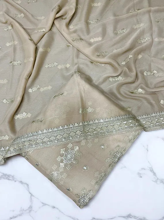 Detail: Matching chiffon dupatta with elegant embroidery, offering grace and comfort with a luxurious look.