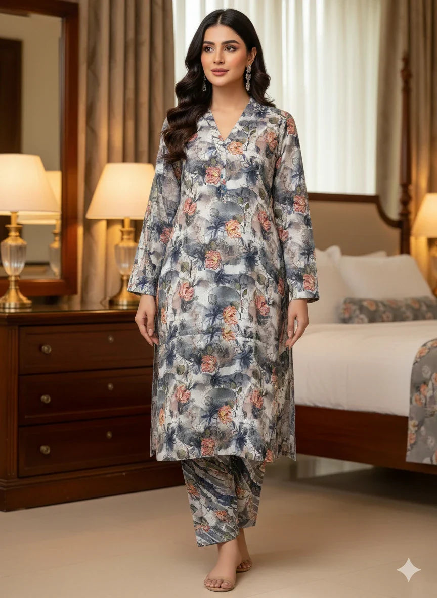 A stylish all-over printed lawn design. Lightweight, breathable fabric. Featuring fresh seasonal patterns and smooth finishing, this article is perfect for summer wear, offering comfort, durability, and an elegant everyday look.