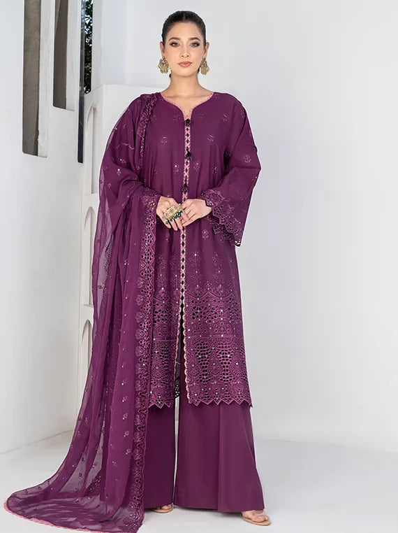 Premium Embroidered Lawn Shirt. Bamber Crinkle Dupatta. Dyed Trouser.
