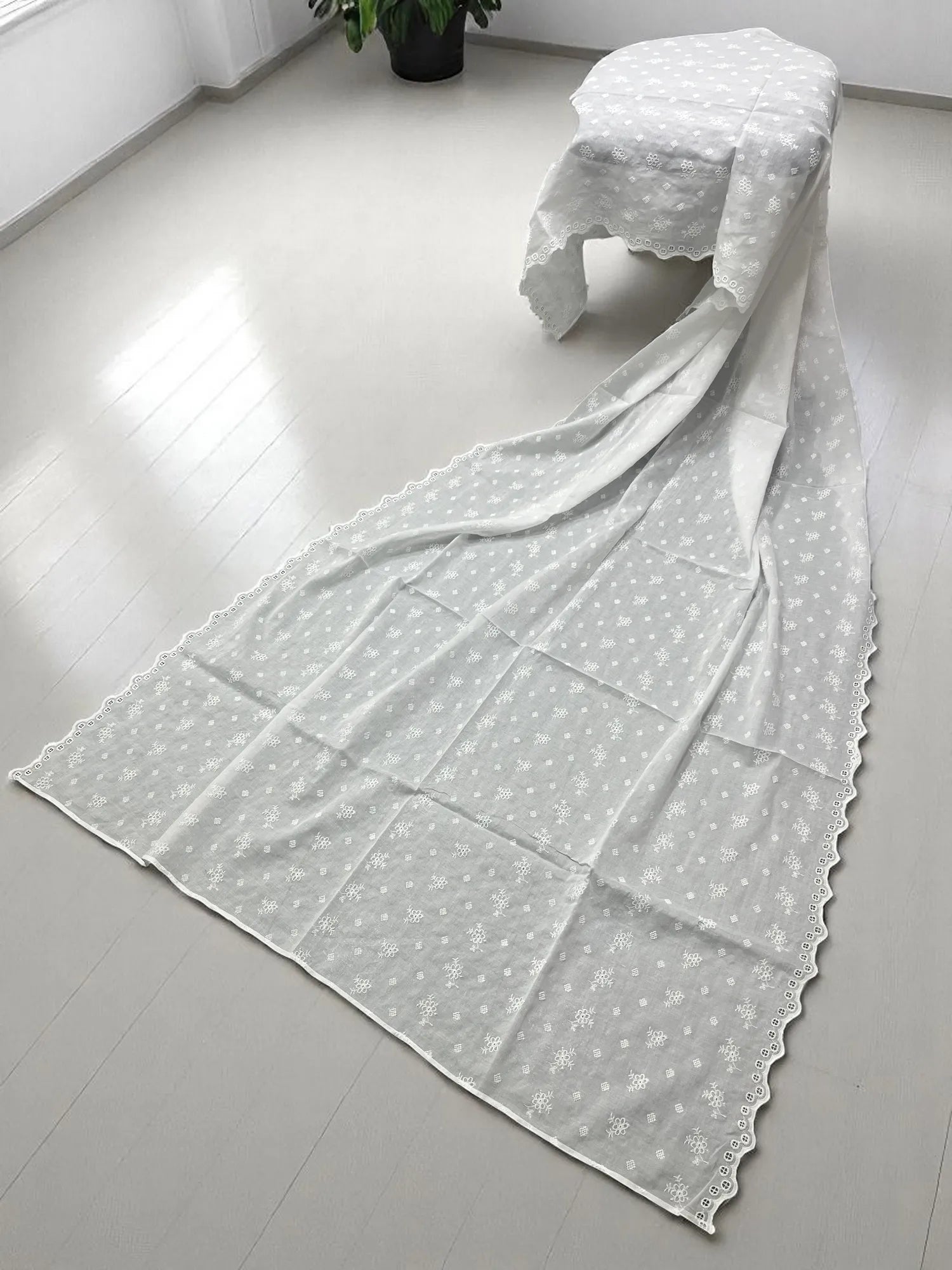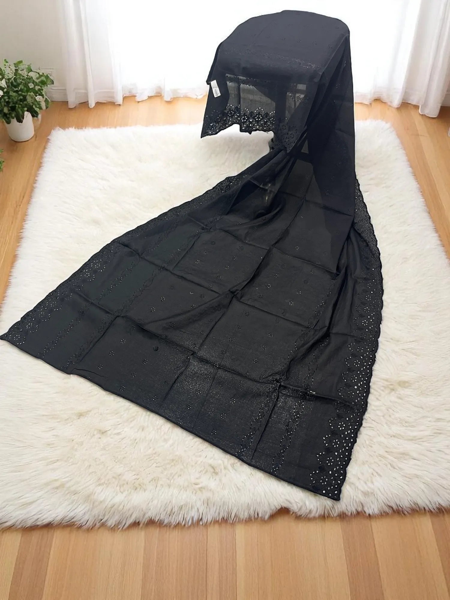 Elegant lawn shawl with delicate sequin embroidery and two-side embroidered