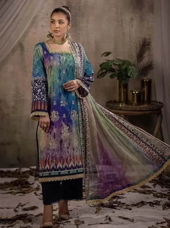 Digital Printed 2 Head Embroidered Lawn Shirt