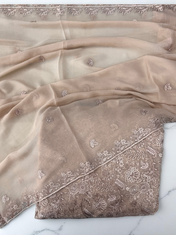Dupatta: Coordinated embroidered chiffon dupatta featuring