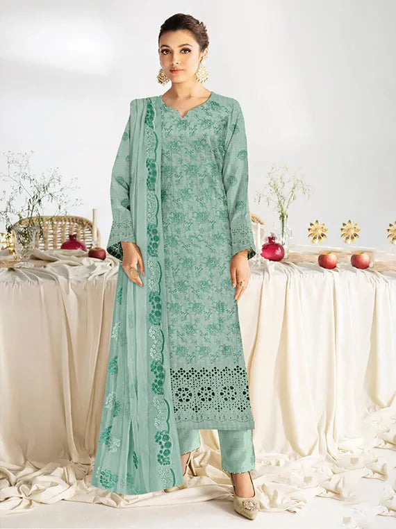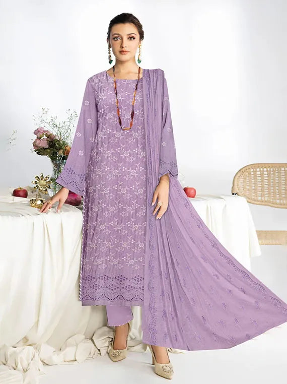 Premium Embroidered Lawn Daman Shirt Front & Back. Embroidered Chiffon Dupatta. Dyed Simple Trouser.