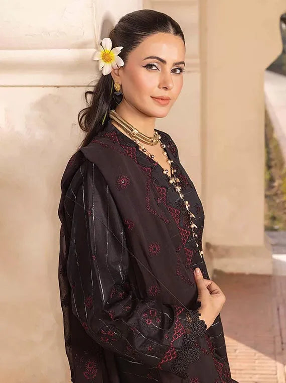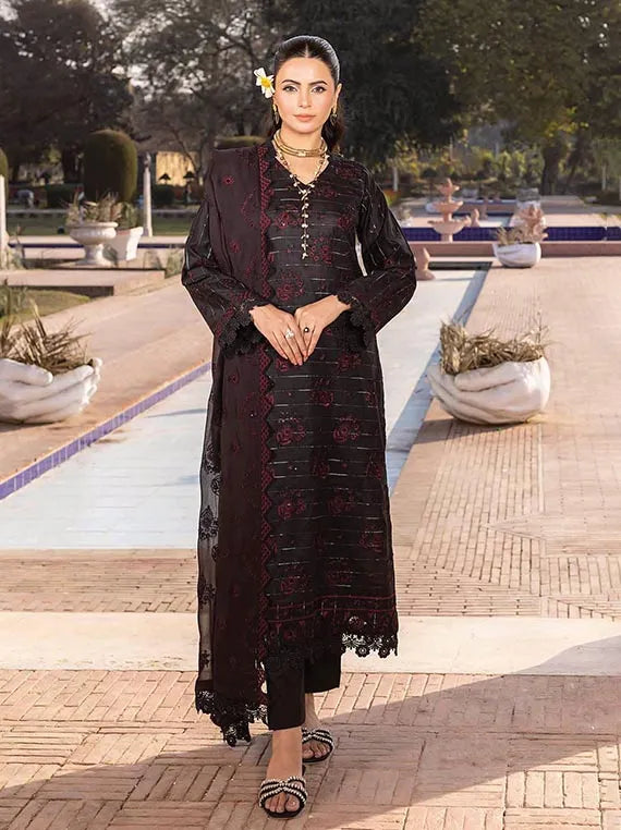 Embroidered Fancy Lawn Shirt With Embroidered Fancy Voil Dupatta Dyed Trouser