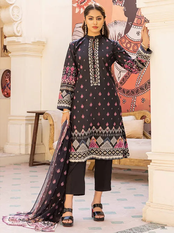 Digital Printed Lawn Shirt Digital Printed Chiffon Dupatta Dyed Trouser