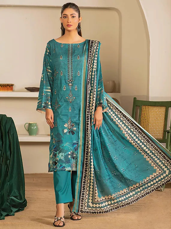 Digital Printed & Embroidered Dobby Lown Shirt. Boring Embroiderd Voil Dupatta