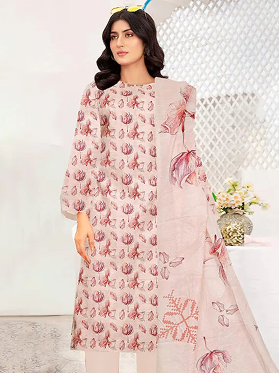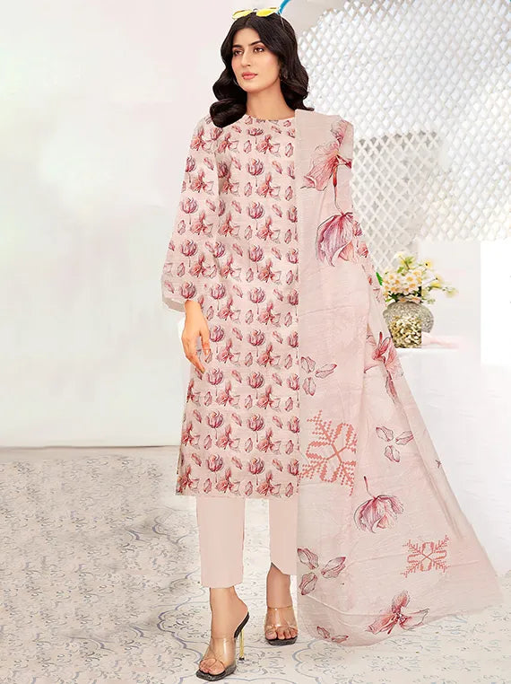 Digital Printed Lawn Shirt. Slub With Printed Lawn Slub Dupatta & Plain. Cotton Trouser