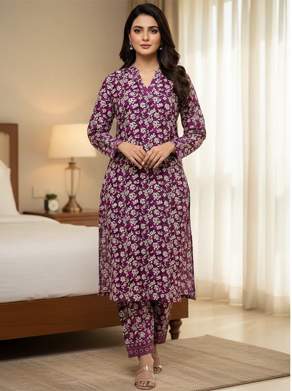 Premium lawn 2-piece with beautiful all-over print. Soft, breathable & perfect for summer wear. ??