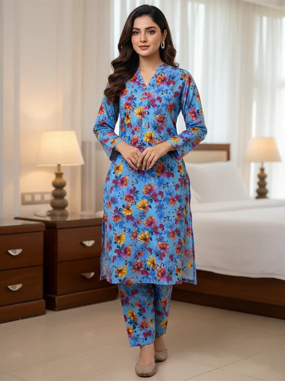 Premium lawn 2-piece with beautiful all-over print. Soft, breathable & perfect for summer wear. ??