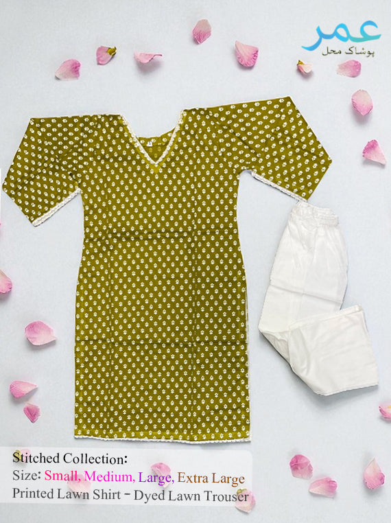 Stitched printed lawn shirt paired with a dyed lawn trouser —